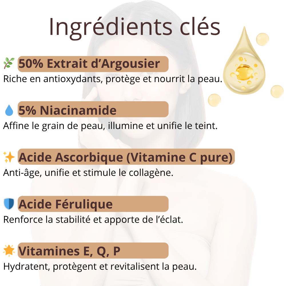 Même formule & actifs clés que les grandes marques (vitamine C encapsulée, collagène, niacinamide).